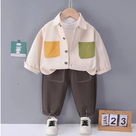 %100 Pamuk 3 Parçalı Çocuk Takım Düğmeli Uzun Kollu Esnek