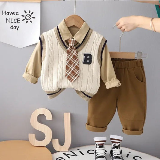 1-5 Yaş Erkek Çocuk 3 Parça Takım Şık Örgü Yelek