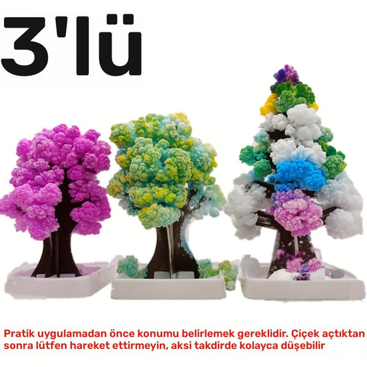 3'lü Mini Kristal Bilim Büyüyen Ağaç Seti Renkli Süs
