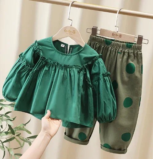 Yeşil Pamuklu Kız Çocuk Takımı Konforlu Esnek Oyun Şık