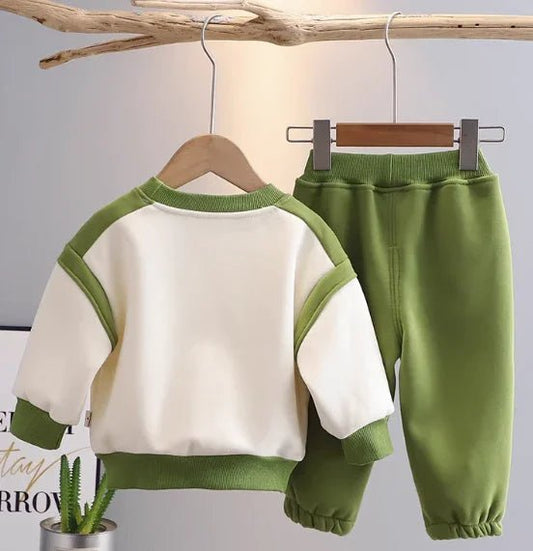 Yeşil Siyah Unisex Çocuk Takımı Sıcak Yumuşak Elastik Bel