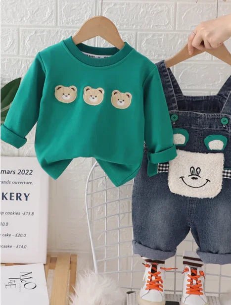 Yeşil Rahat Pamuklu İkili Çocuk Takımı: Şık Tulum ve Sweet (1-5 Yaş)