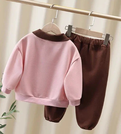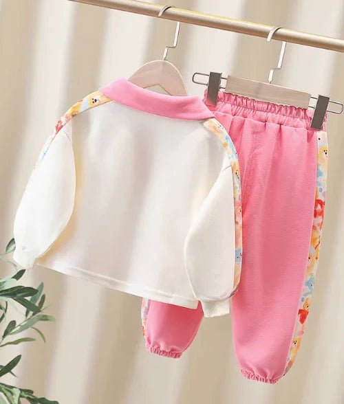 3D Baskılı Pembe Lacos Yaka Kız Çocuk Takımı 2-7 Yaş
