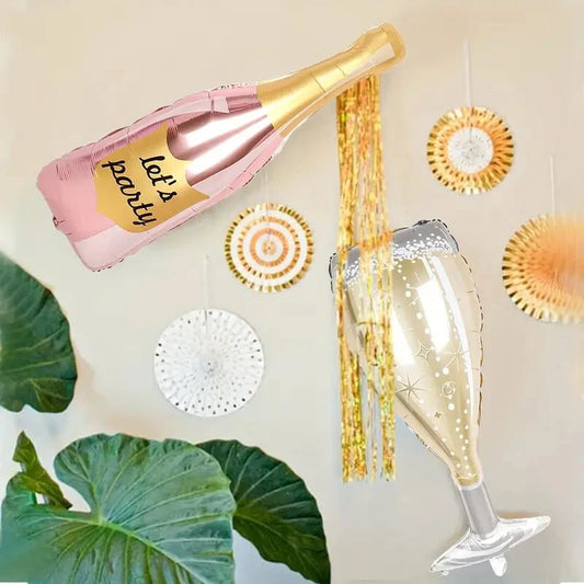 4'lü Gül Altın Şarap Şişesi ve Kadeh Folyo Balon Seti