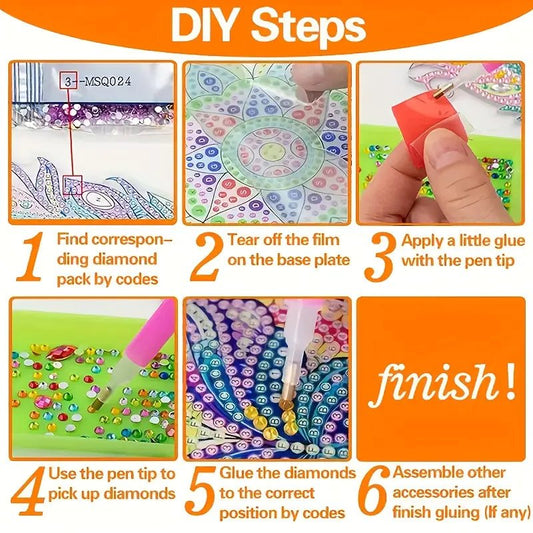 4 Parça Mandala Elmas Boyama Seti Yuvarlak Ahşap Altlık