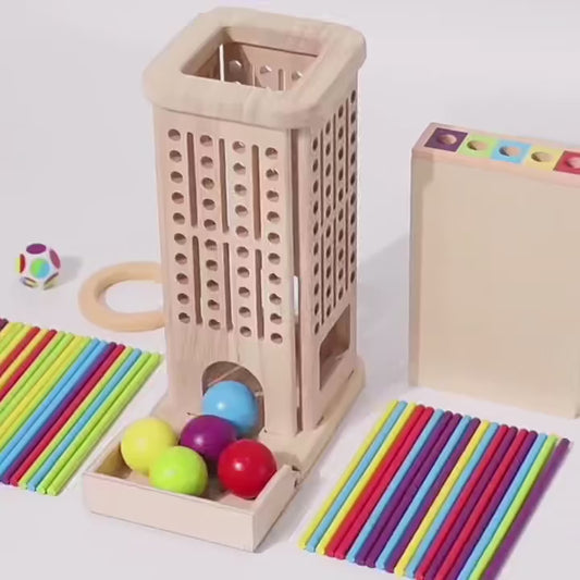 40 Renkli Ahşap Çubuk ve Top Oyunu 3 Modlu Eğitici
