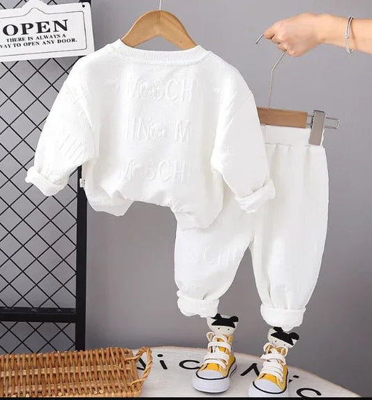 Beyaz 3D Baskılı Pamuklu Çocuk Takım Rahat Eğlenceli Stil