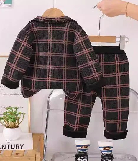 Çizgili Kadife Erkek Çocuk 1-5 Yaş 3 Parça Rahat Takım