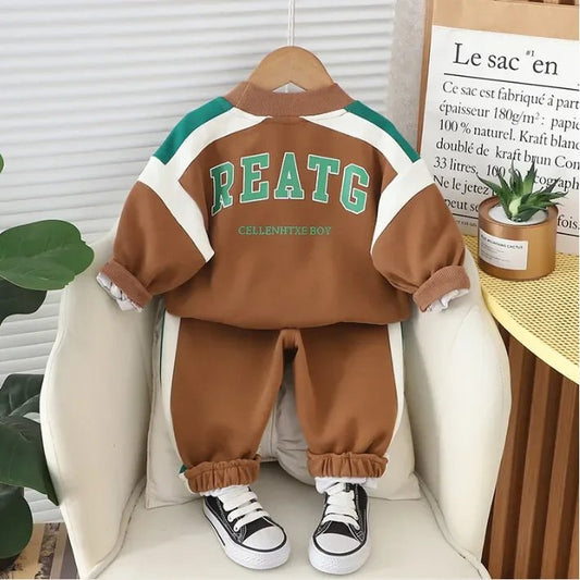 Çizgili Kahverengi-Yeşil Pamuklu Erkek Çocuk Eşofman Takımı 1-5 Yaş