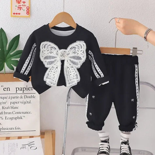 Dantel Fiyonklu İki Parçalı Kız Çocuk Takımı - Rahat Şık Set