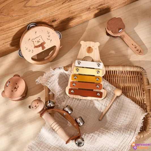 Doğal Ahşap 5 Parça Montessori Hediye Seti - Eğitici, Dayanıklı