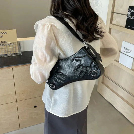 Kabartmalı 3D El Detaylı Suni Deri Omuz Çantası