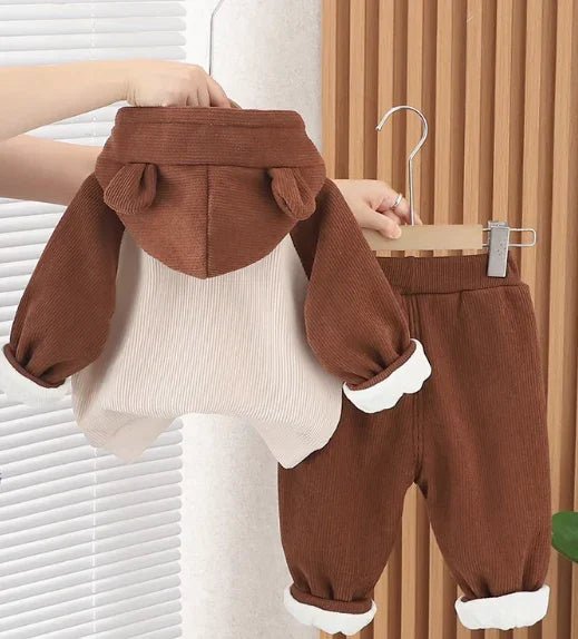 Kadife Kapüşonlu Çocuk Takım 1-5 Yaş Sıcak Rahat Şık Dayanıklı