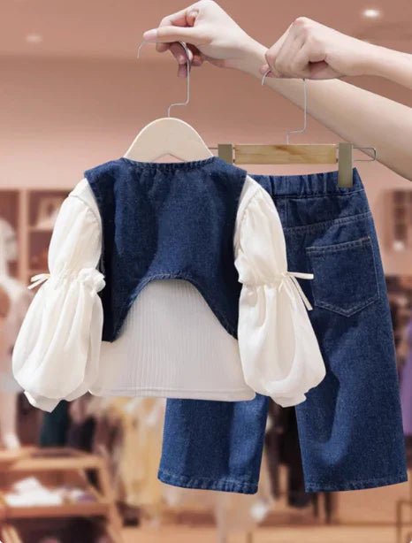 Kız Çocuk Denim Ceket ve Pantolon Takımı Rahat Dayanıklı Şık