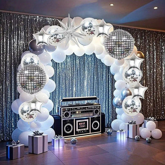 135 Parça Metalik Balon Garland Seti Disco Temalı Parti Süsleri