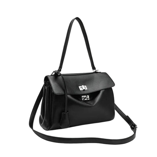 Lüks Siyah Kilit Tokalı Kadın Omuz Çantası Deri Şık