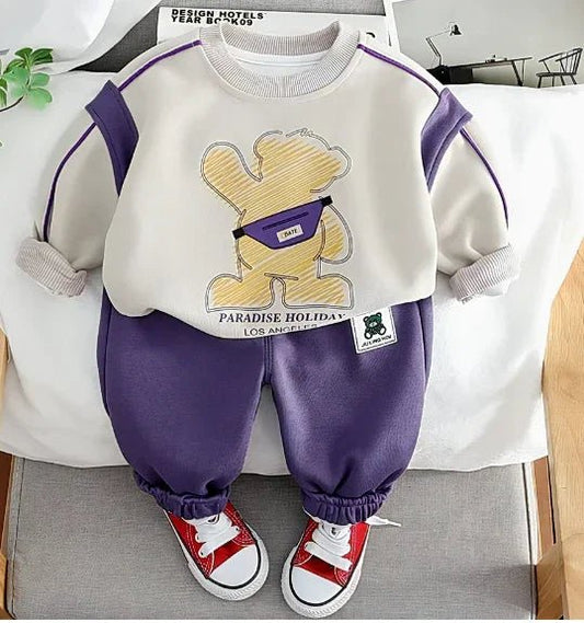 Mor Bej Pamuklu Yumuşak 1–5 Yaş Çocuk Üst Alt Takımı