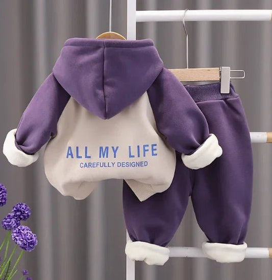 Mor Pamuklu Çocuk Takımı 1-5 Yaş Rahat Esnek Stil