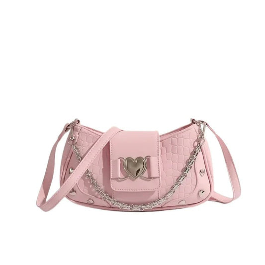 Pudra Kalp Detaylı Kadın Zincirli PU Kol Çantası Şık