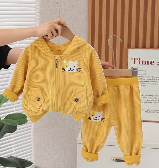 Sarı Kapşonlu Kız Çocuk Takımı Yumuşak Pamuklu Rahat Kesim