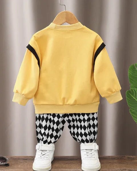 Sarı Damalı Çocuk Takımı Yumuşak Hafif Kumaş Kolay Giyim