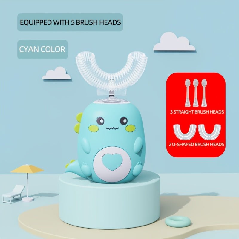 U-Şekilli Dinozor Elektrikli Diş Fırçası 5 Başlıklı Şarjlı 3-Modlu