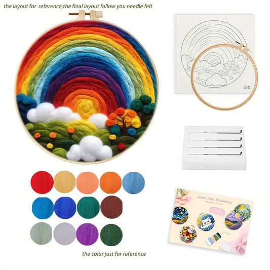 Renkli Ağaç Desenli İğne Keçe Başlangıç Seti 20x20 cm