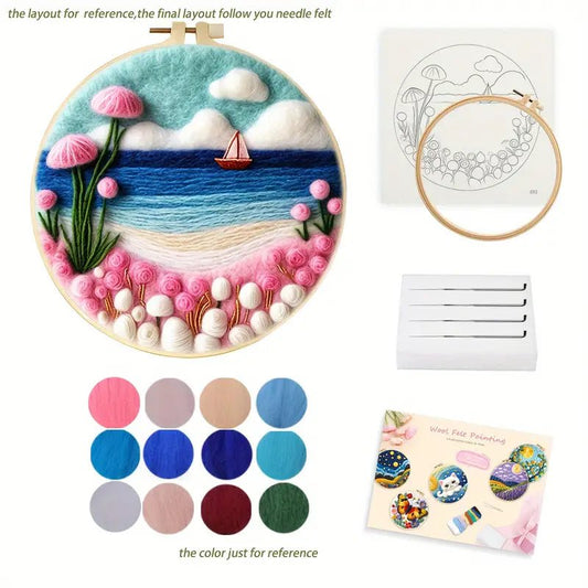 Keçeleme İğne Seti 20cm Yuvarlak Kasnak Köpük Pedli Renkli Polar