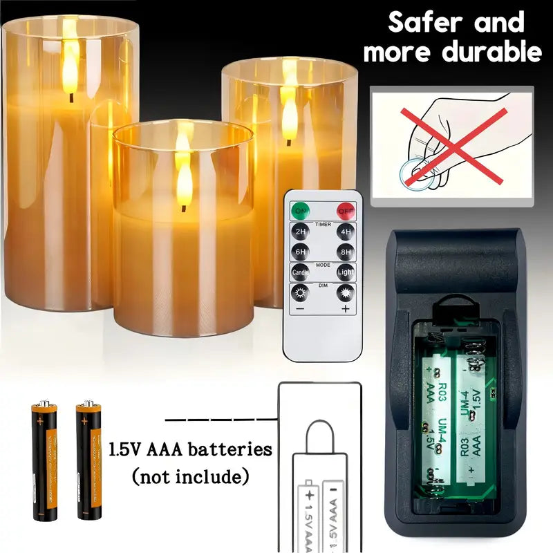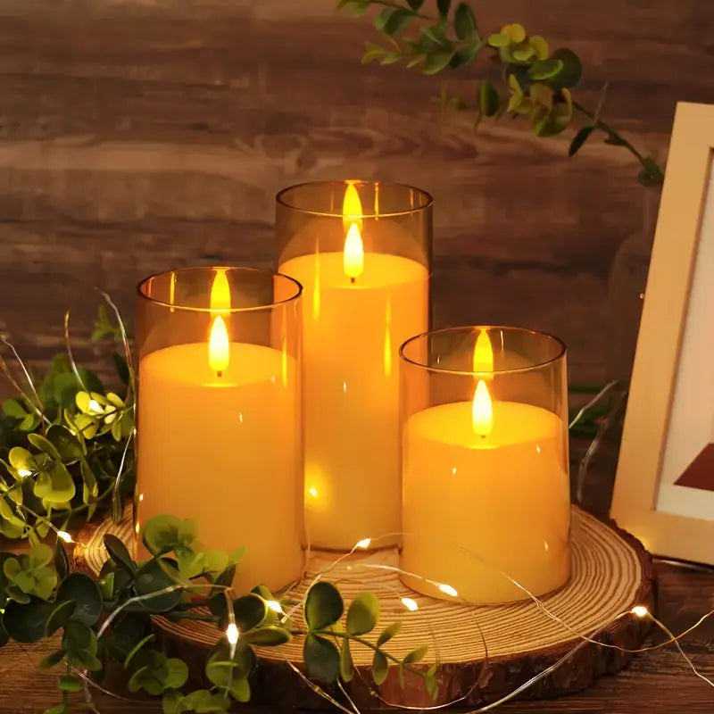 3'lü Gerçekçi 3D Pille Çalışan Uzaktan Kumandalı LED Mum