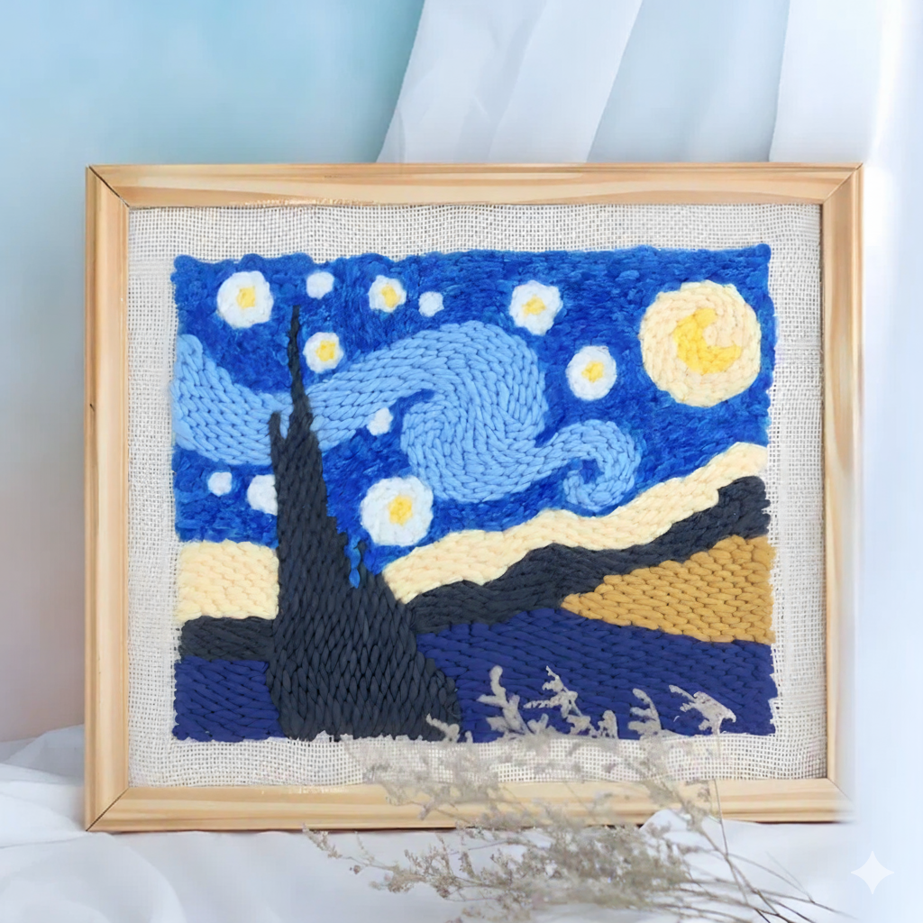 Sizi alacakaranlığın büyüleyici anlarına ve yıldızların sonsuz dansına davet eden "Twilight Dream" ile tanışın. Van Gogh'un ölümsüz eserinden ilham alan bu eşsiz punch nakışı, modern bir yorumla huzuru ve sanatsal derinliği bir araya getiriyor.